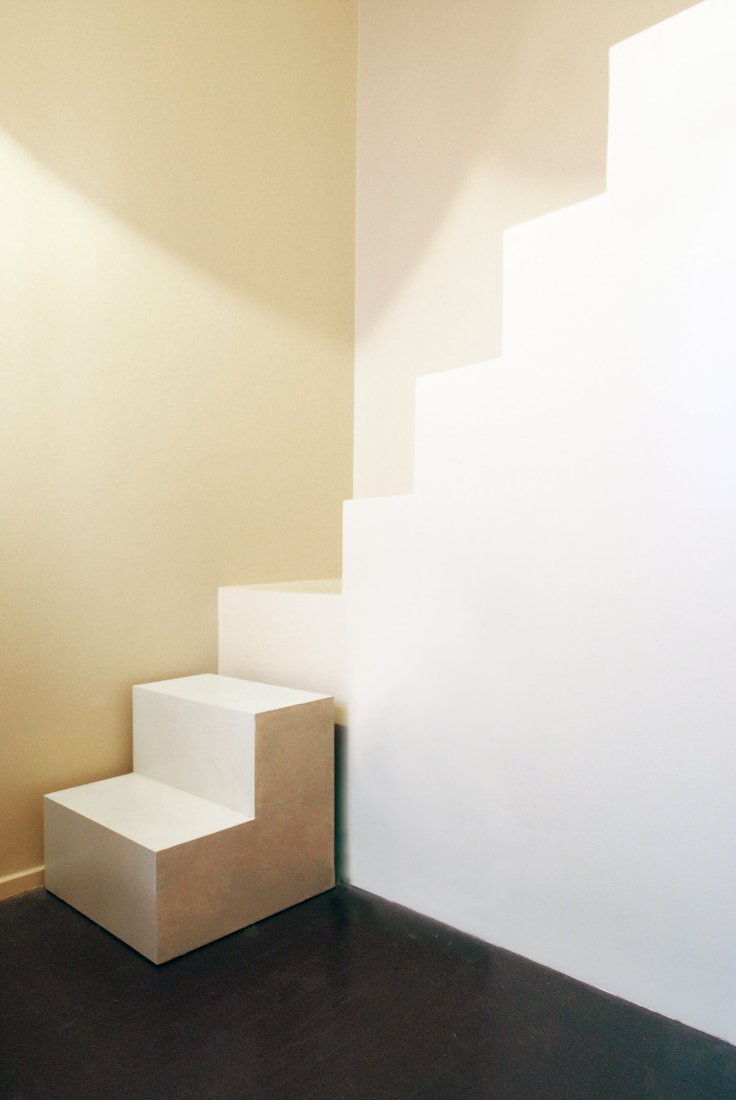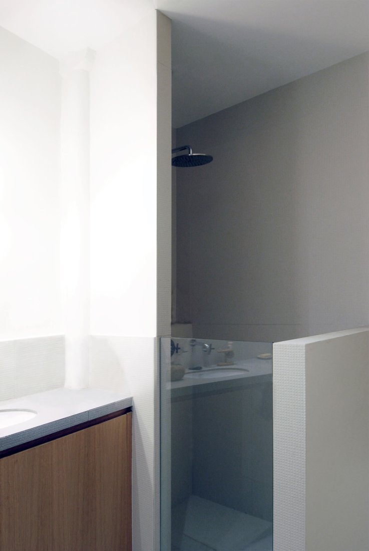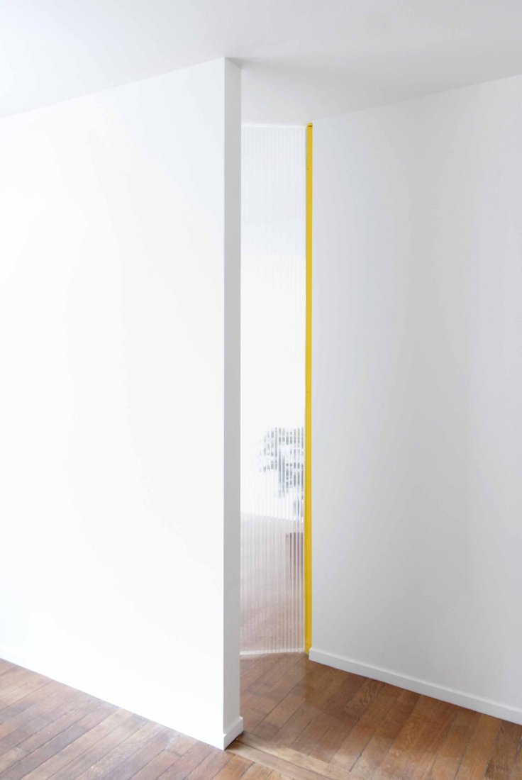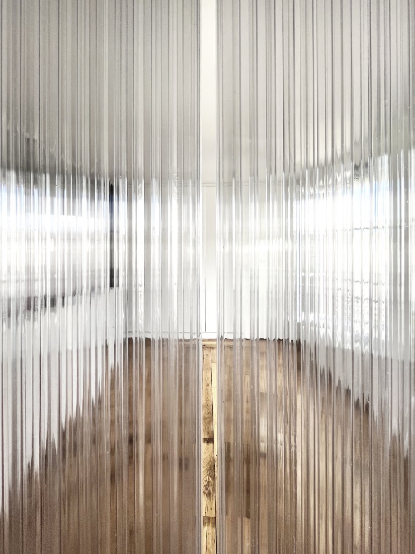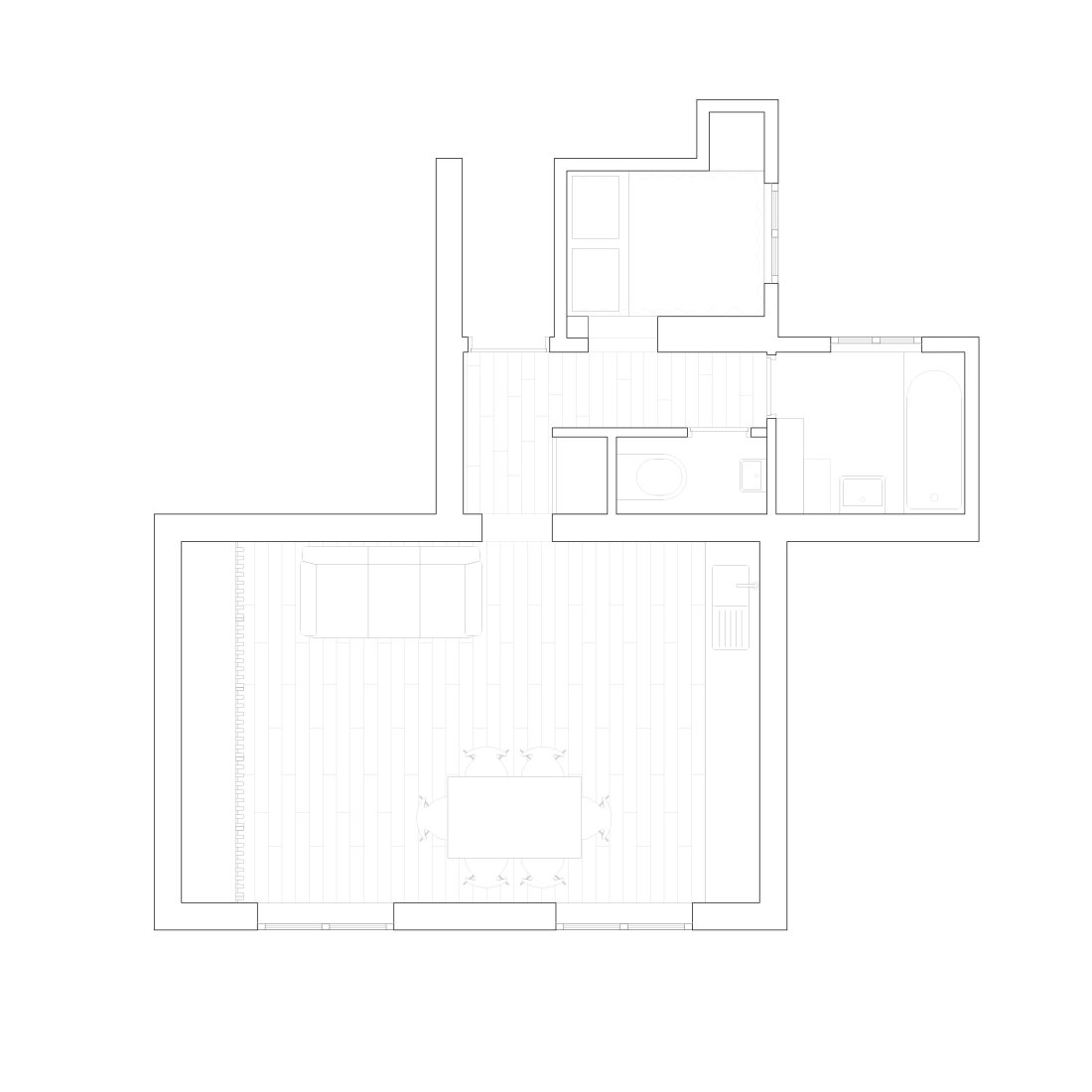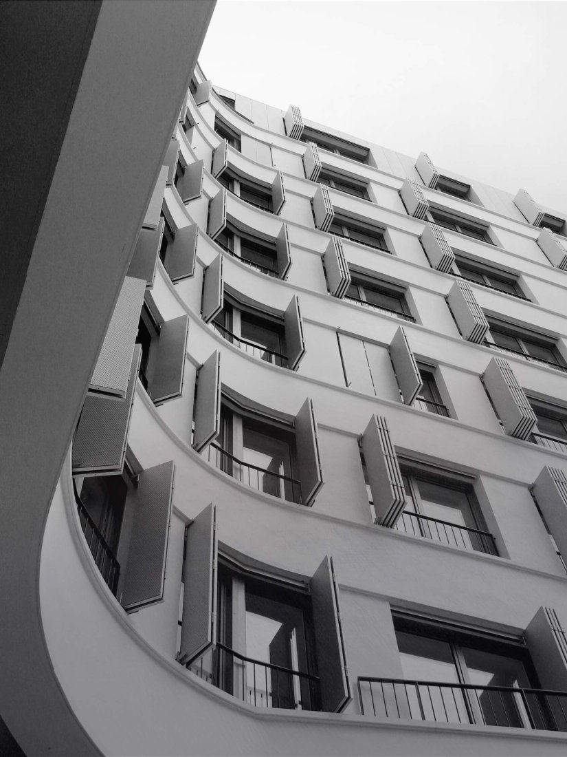 With a tight project budget, the exterior work focuses simply on replacing the large metal shutters with glazed frames to improve interior lighting. For cost reasons, the rest is left in its raw state.