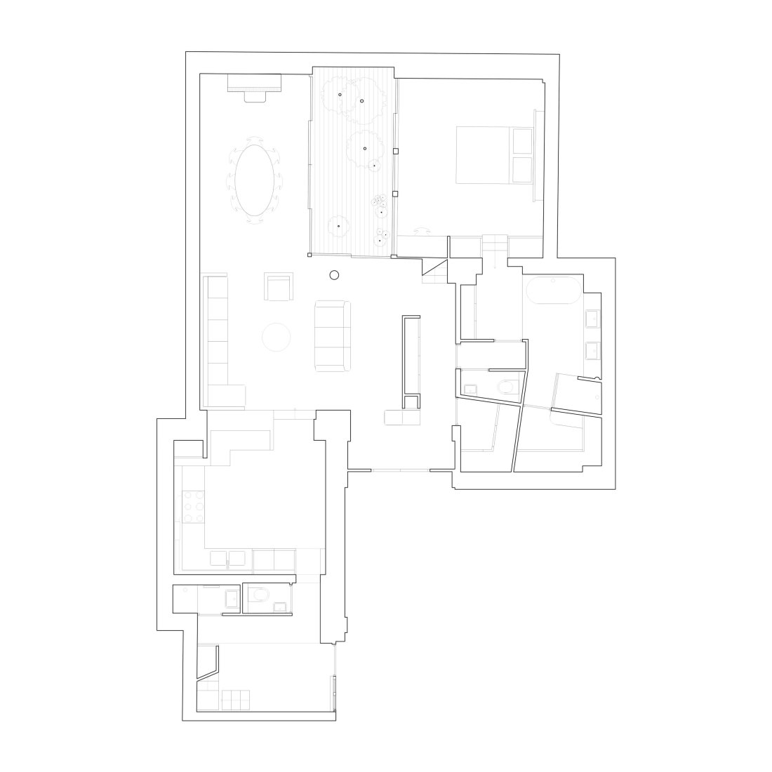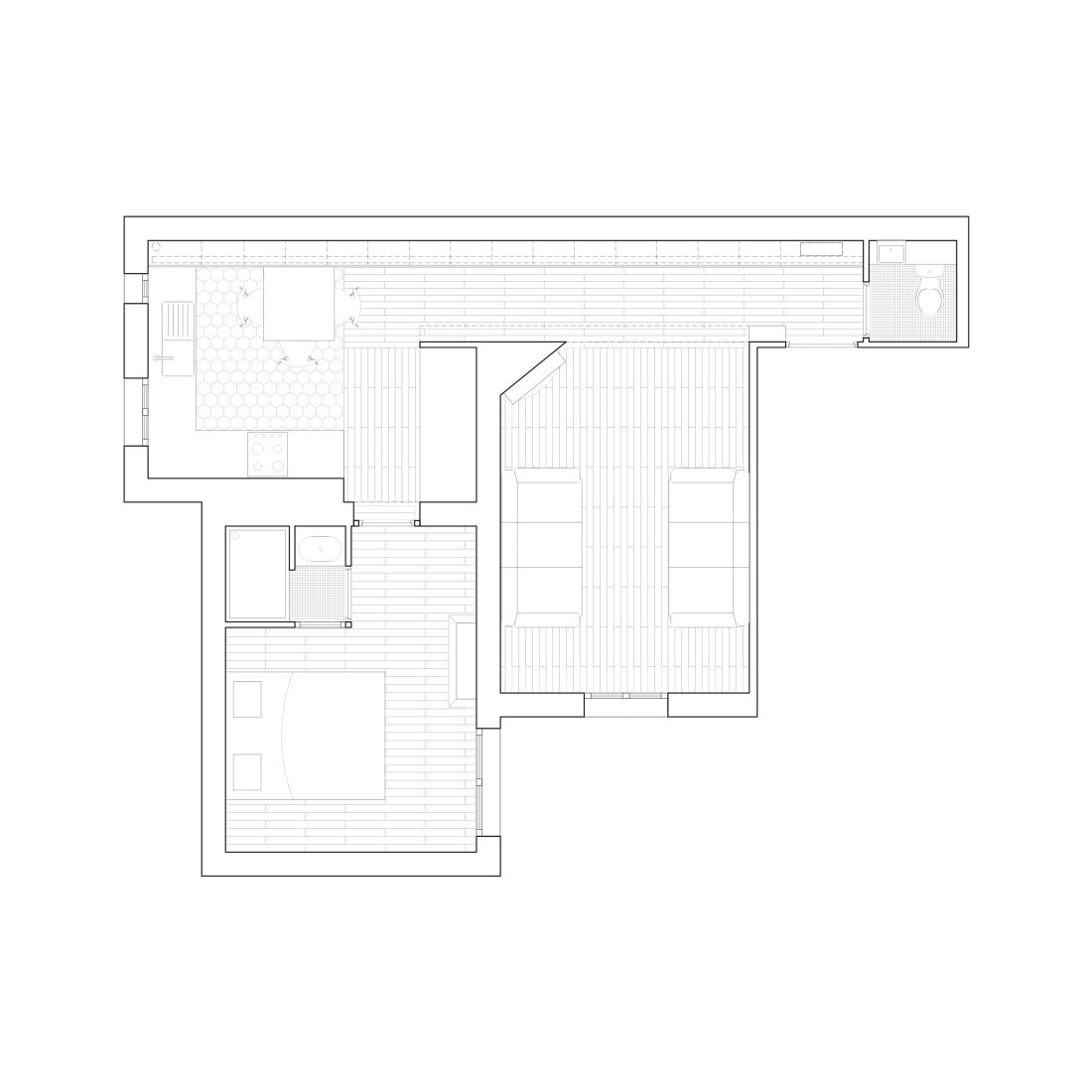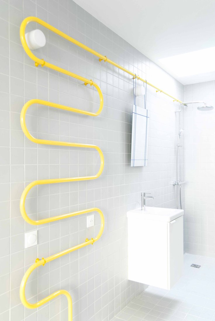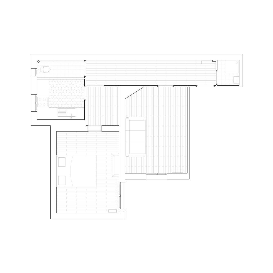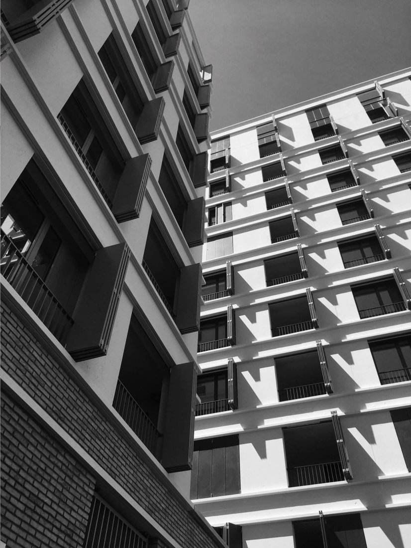 With a tight project budget, the exterior work focuses simply on replacing the large metal shutters with glazed frames to improve interior lighting. For cost reasons, the rest is left in its raw state.