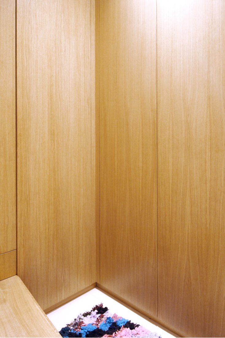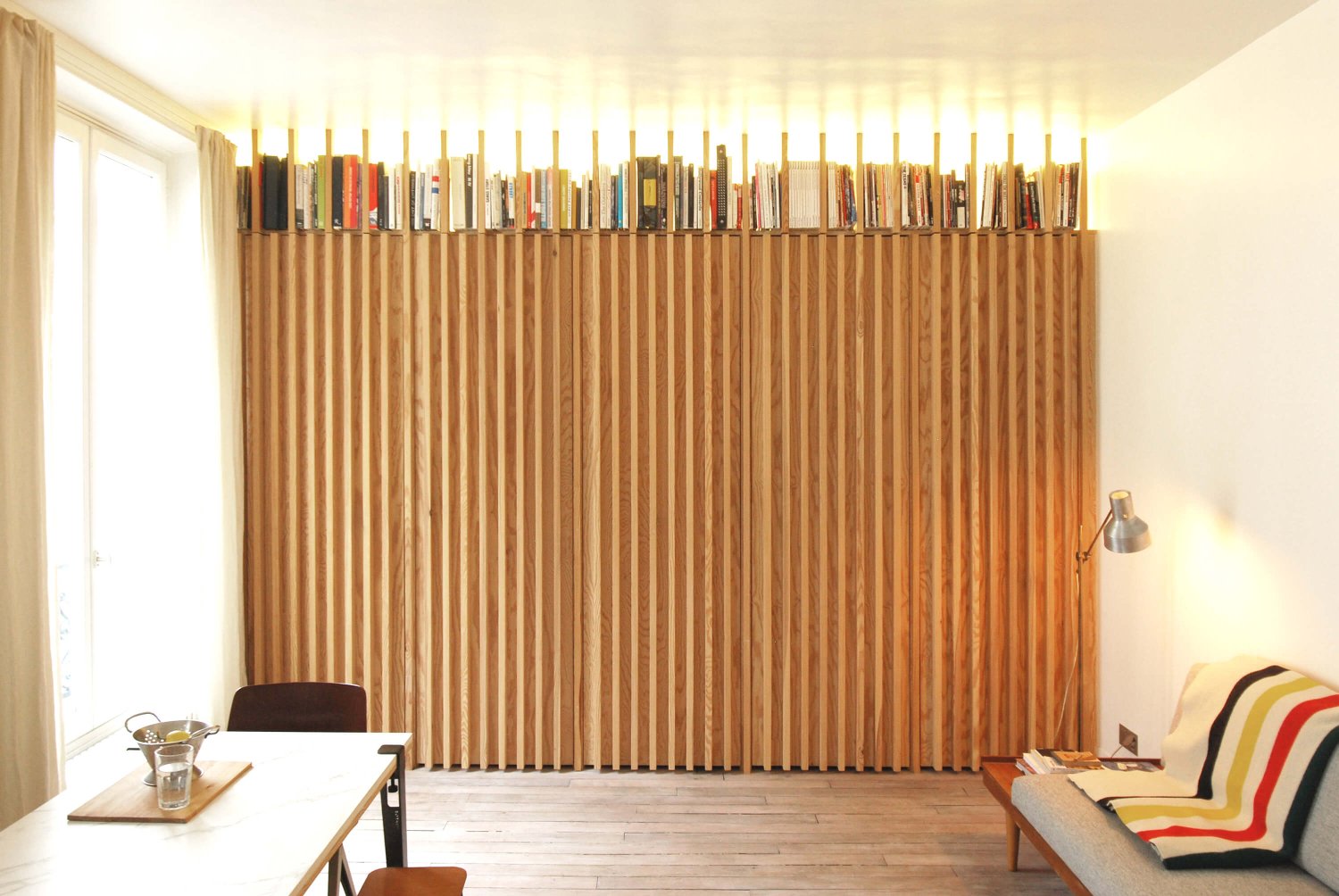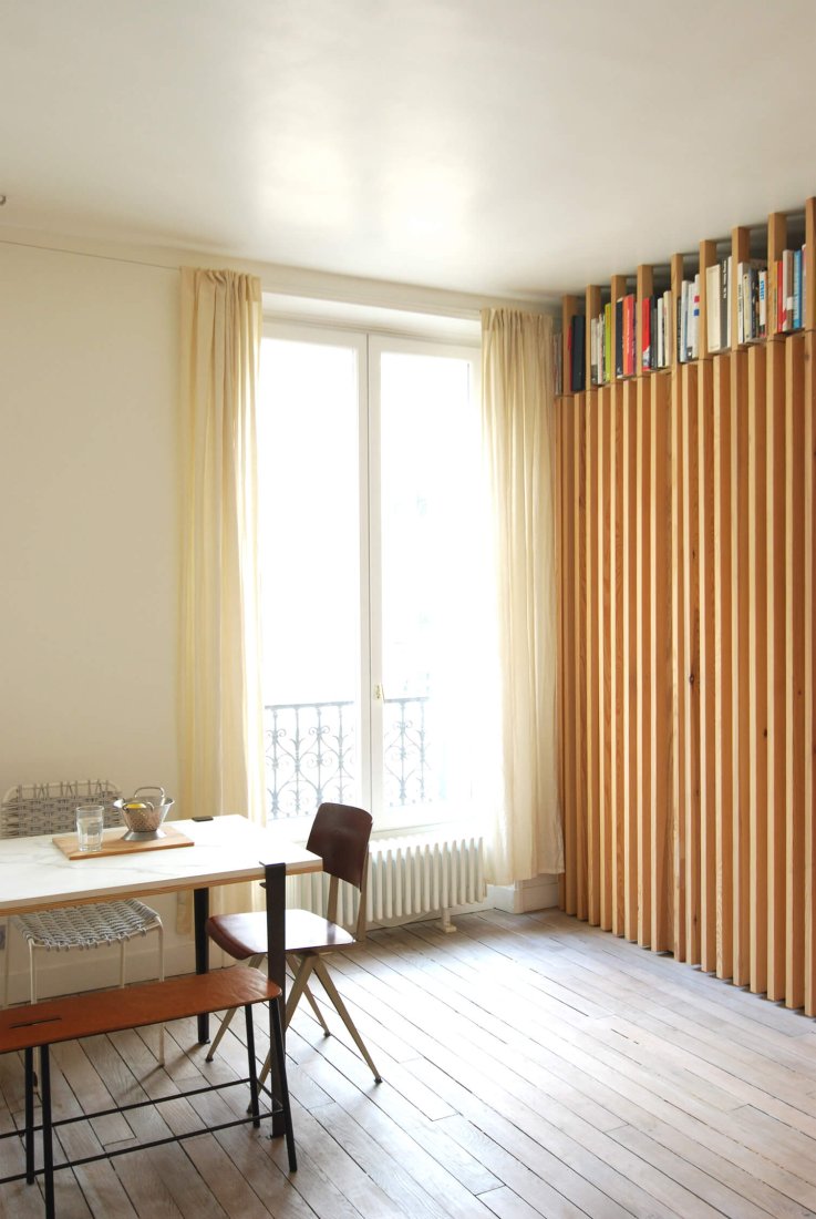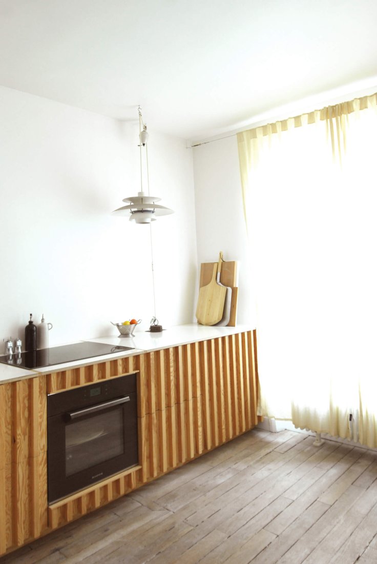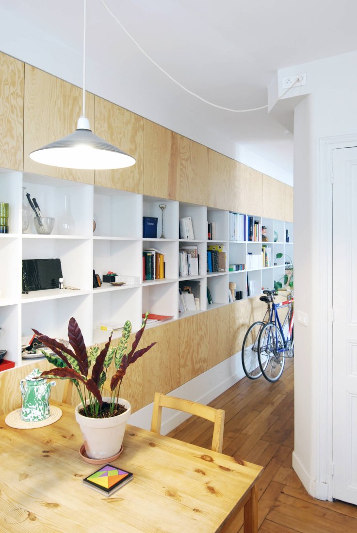 À l’intérieur, l’espace est cloisonné par des cloisons montées en briques de terre de réemploi franciliennes crues et comprimées et par des panneaux de bois bruts. Des matériaux chaleureux comme un contrepoint bienvenu à la dureté du site et du climat social local. Un faux plafond en bois et laine de bois complète l’ensemble pour améliorer le confort thermique intérieur et réduire la consommation énergétique globale. Ici, ce sont des matériaux locaux et durables qui répondent aux enjeux sociaux et environnementaux soulevés par le site.