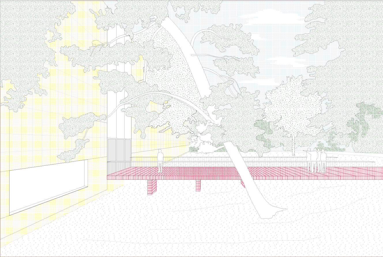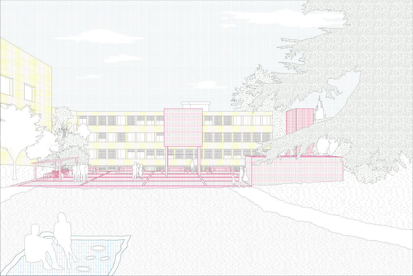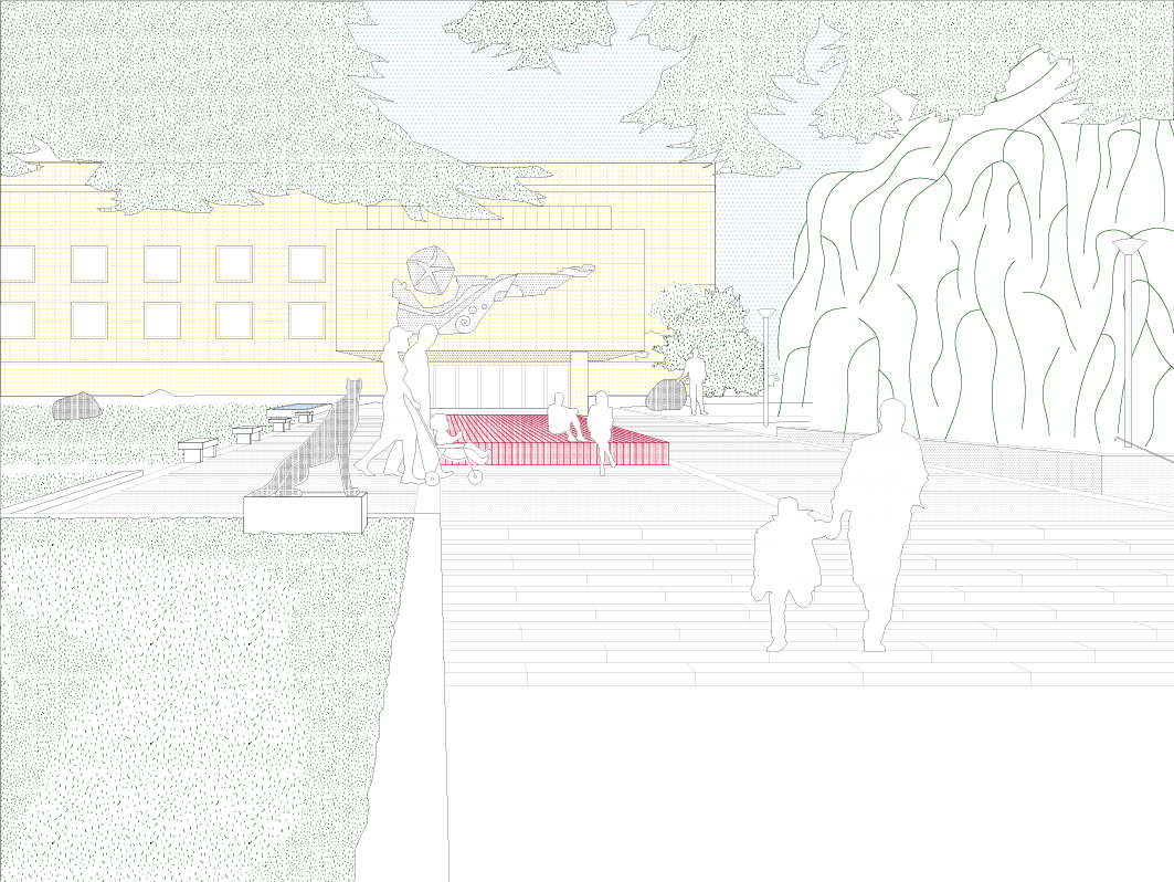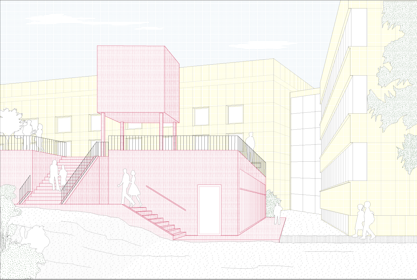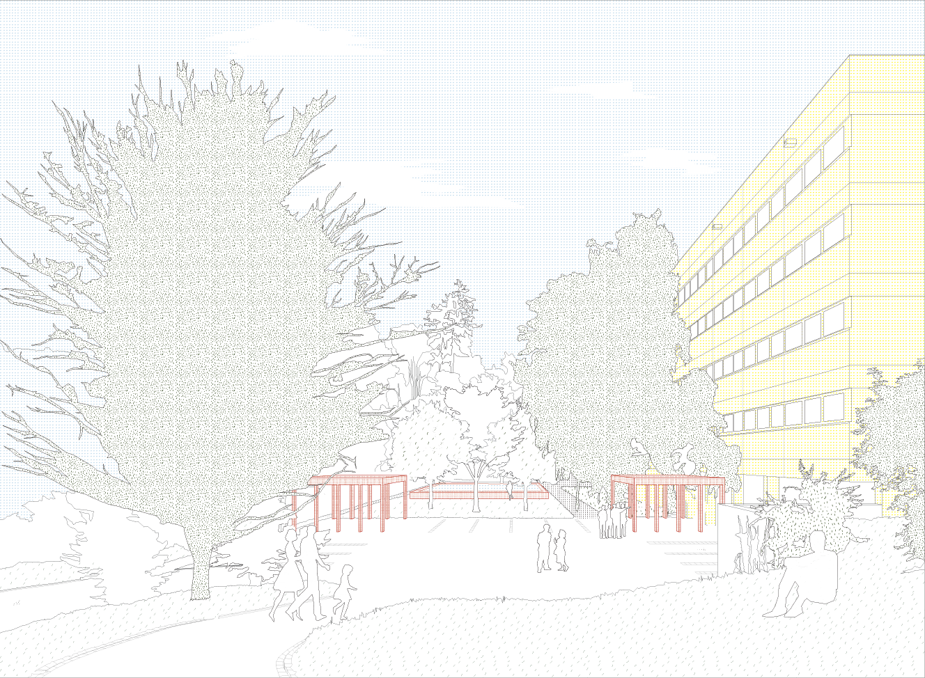 The surrounding irea is barren: paved with concrete and asphalt, sealed everywhere, aging, or even dilapidated. It's an existing suburban landscape, one that remains unnoticed but represents a significant societal and environmental challenge for us. The goal here is to enhance the site's amenity and protect — or at least assist — the most vulnerable.