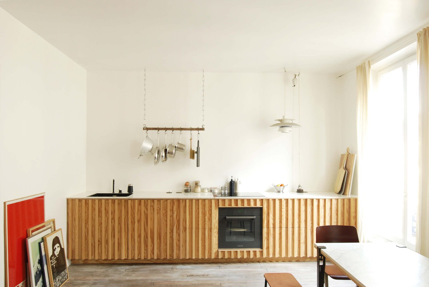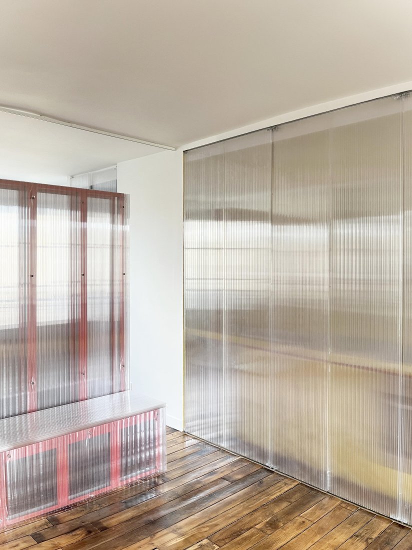 Inside, the space is partitioned with walls made from reused raw and compressed earth bricks from the Île-de-France region, as well as with raw wood panels. These warm materials offer a welcome contrast to the harshness of the site and local social climate. A suspended ceiling made of wood and wood wool complements the design, improving indoor thermal comfort and reducing overall energy consumption. Here, local and sustainable materials address the social and environmental challenges posed by the site.